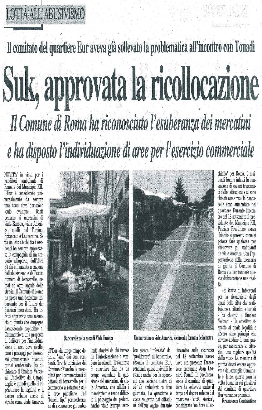 23-11-2007 EurOggi Mercatini dell'EUR a rischio approvata la ricollocazione